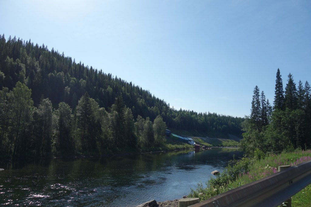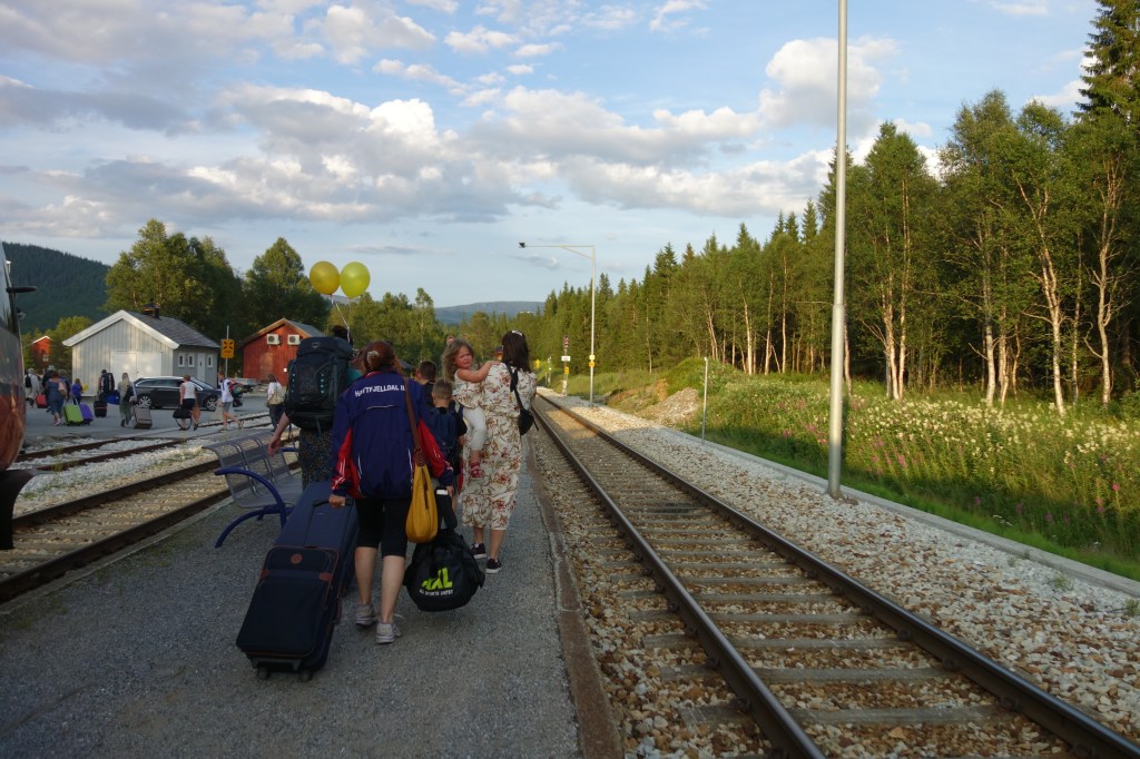 Min veninde havde aftalt, at manden skulle have hentet mig på den lokale station Namskogan. Men der skete noget uventet, et par timer før ankomst, en sjælden togulykke, der kunne minde om godstogsulykken i Danmark i år, dog var der personskade i den danske og det var en menneskelig fejl, mens ingen tilskadekomne i ulykken kortefter Namskogan, som var en klimaulykke – og ulykken tvang togene til at køre ekstra langsomt. Med 34 grader, måtte man sænke farten. Vejene blev imens spærret for E6.